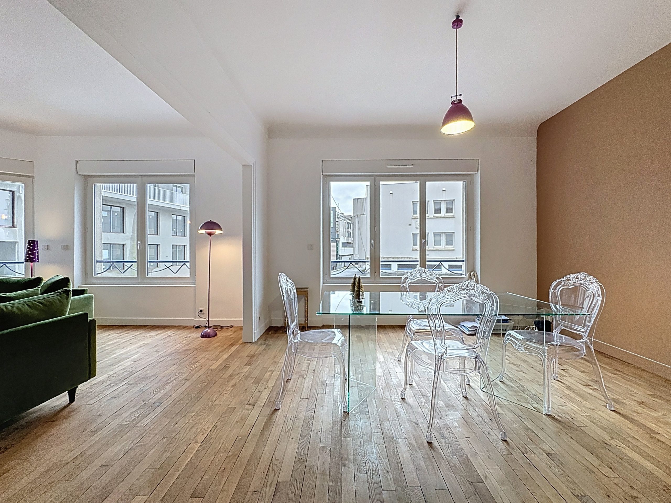 Lorient – Hypercentre, au 1er étage d’un immeuble situé à proximité immédiate de l’ensemble des commodités (commerces, services, transports, écoles), cet appartement combine volumes, luminosité et caractère.