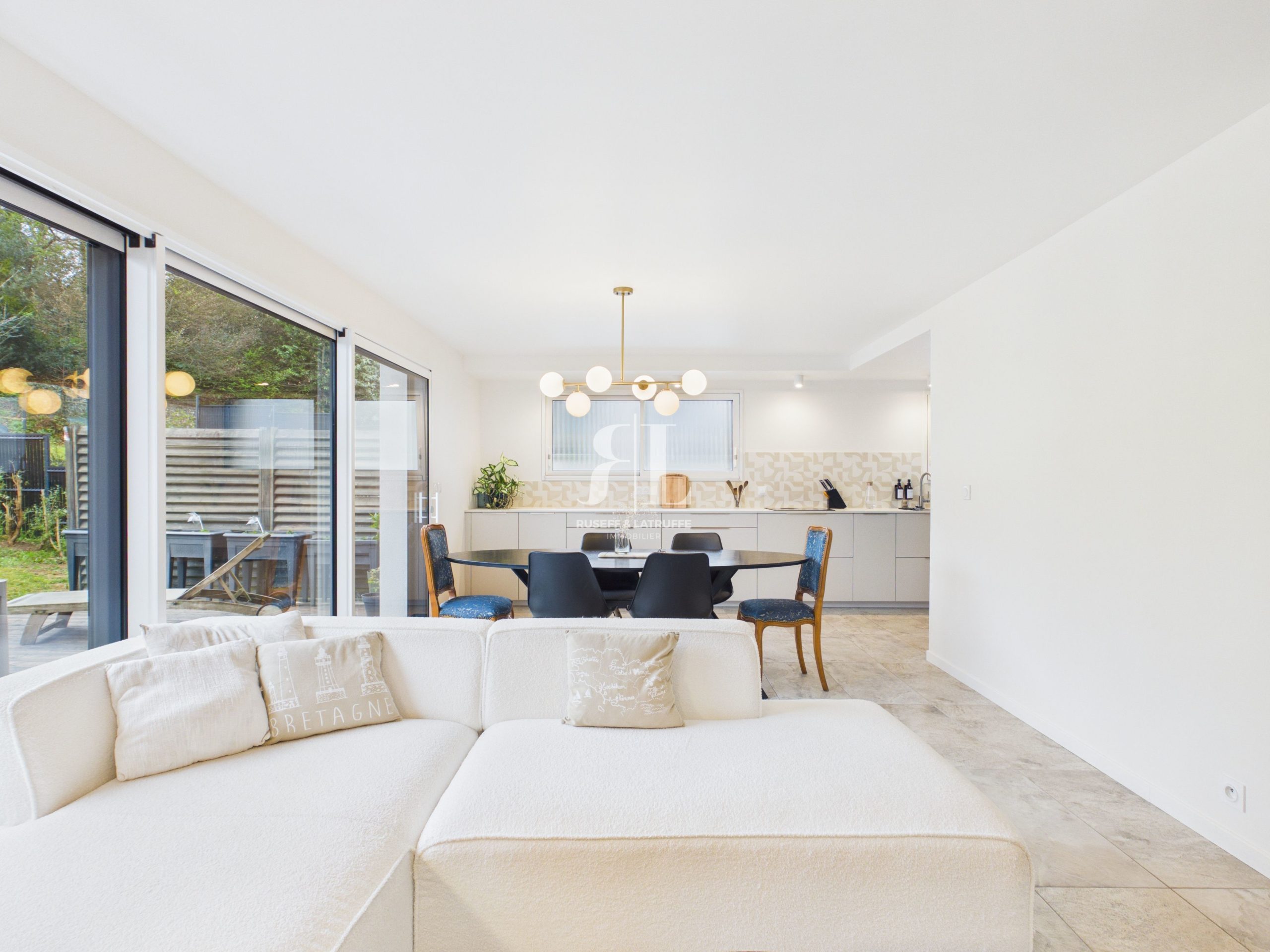 CAUDAN – À proximité immédiate du centre, cette maison entièrement rénovée séduit par son ambiance contemporaine et sa luminosité omniprésente, offrant un cadre de vie aussi agréable que fonctionnel.